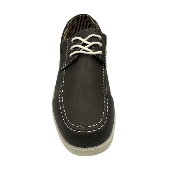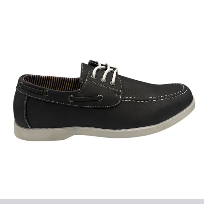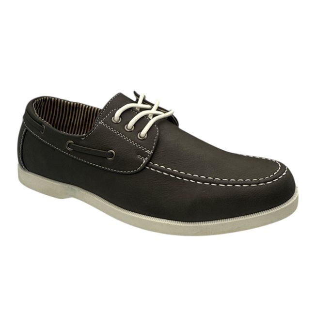 Men’s boat loafers with laces, fabric lining, leather insole, light-colored topstitches and light white sole. They inspire a mood for travel and fits in all casual men’s wardrobes.Color: Brown, Blue, Gray.