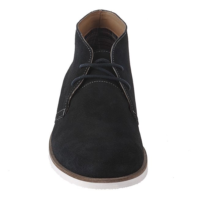 Men’s suede ankle boots, with laces, light white sole and fabric inner lining. They offer interesting look while providing unique comfort.Material: Suede leather.Heel height: 3 cm.Boot height: 14 cm.Color: Black, Blue.