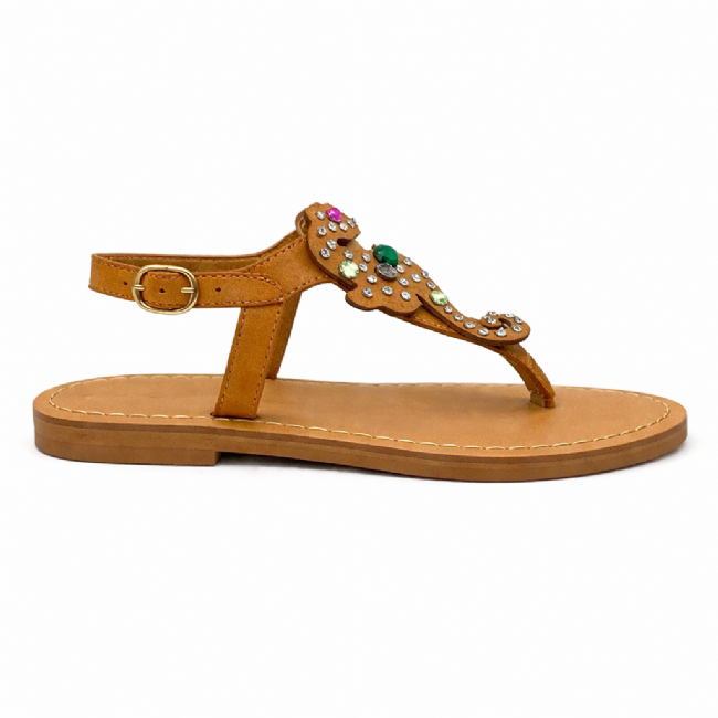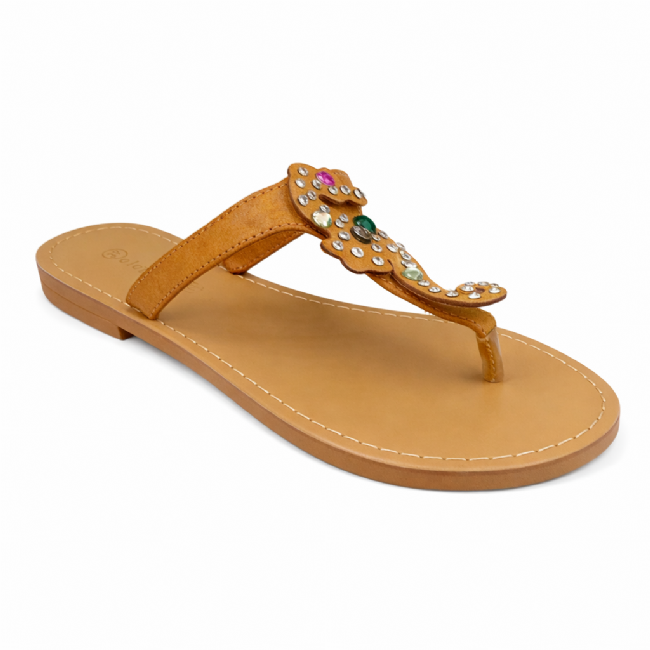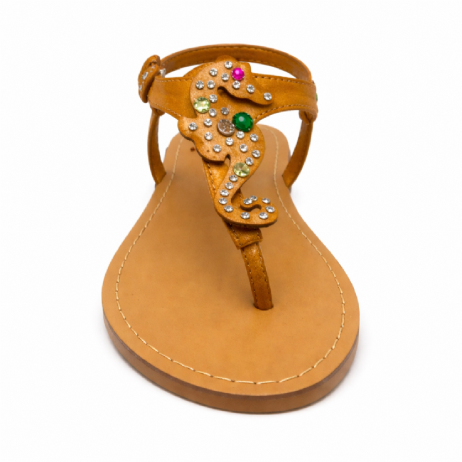 Γυναικείο σανδάλι, δερμάτινο, με ιππόκαμπο διακοσμημένο με πέτρες.