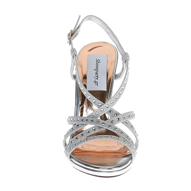 Γυναικεία ψηλοτάκουνα multistrap πέδιλα με στρας και glitter. Αγκαλιάζουν κομψά το πόδι και χαρίζουν μια μοναδικά θηλυκή εμφάνιση.