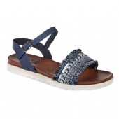 Σανδάλια με φάσα σε σχέδιο έθνικ με ξέφτια, περλίτσες, πούλιες και στρασάκια, με βασικό χρώμα το καλοκαιρινό μπλε. Διαθέτουν λουράκι που δένει στον αστράγαλο. Μαλακά και άνετα, σας χαρίζουν στιλ κάθε στιγμή της ημέρας σας.