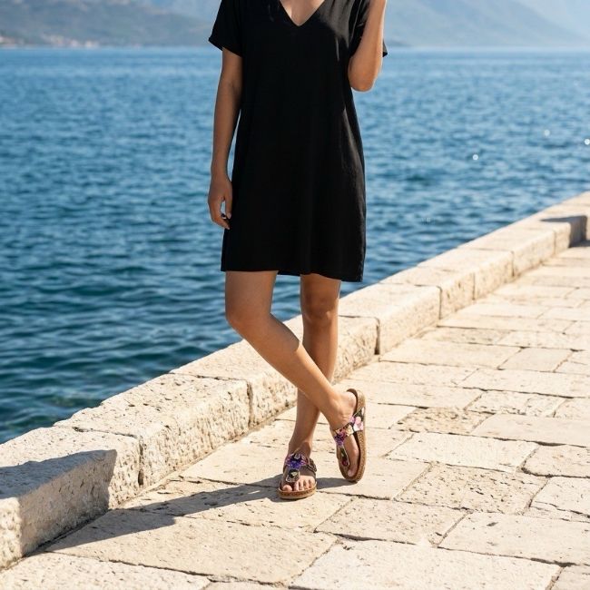 Σαγιονάρα σκαφτή με δίχαλο και φλοράλ μοτίβο. Διαθέτει στη σόλα επένδυση φελλού και αγκράφα με ρυθμιζόμενο κλείσιμο στην φάσα.