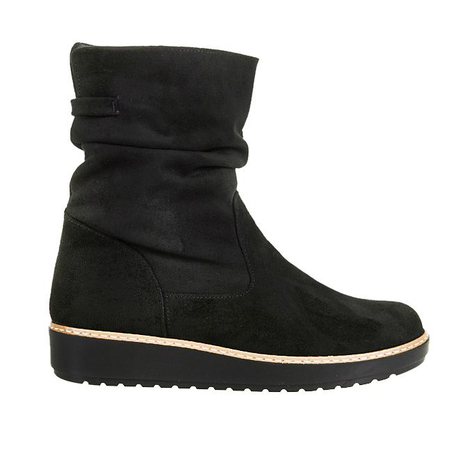 Γυναικείο flat μποτάκι με σούρα από υλικό τύπου σουέτ. Διαθέτει ενυσχυμένη λαστιχένια σόλα για άνεση και σιγουριά στο περπάτημα.