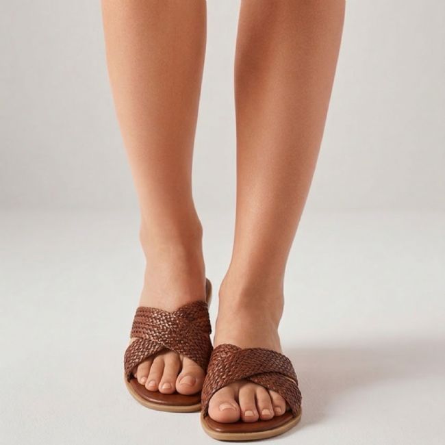 Σανδάλι flat με ψάθινη φάσα χιαστί και πολύ μαλακό πάτημα. Προσφέρει κομψότητα και άνεση κάθε στιγμή.