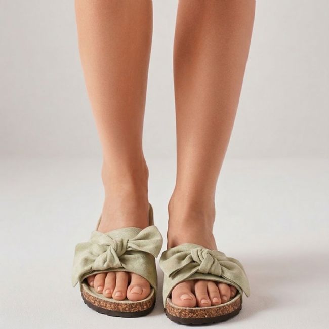 Γυναικείο σανδάλι πλατφόρμα με φιόγκο, σόλα με όψη φελού και υλικό τύπου σουέτ. Ιδανικό για όλες τις ώρες και για πολλές περιστάσεις.