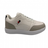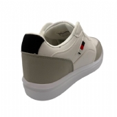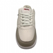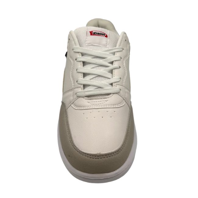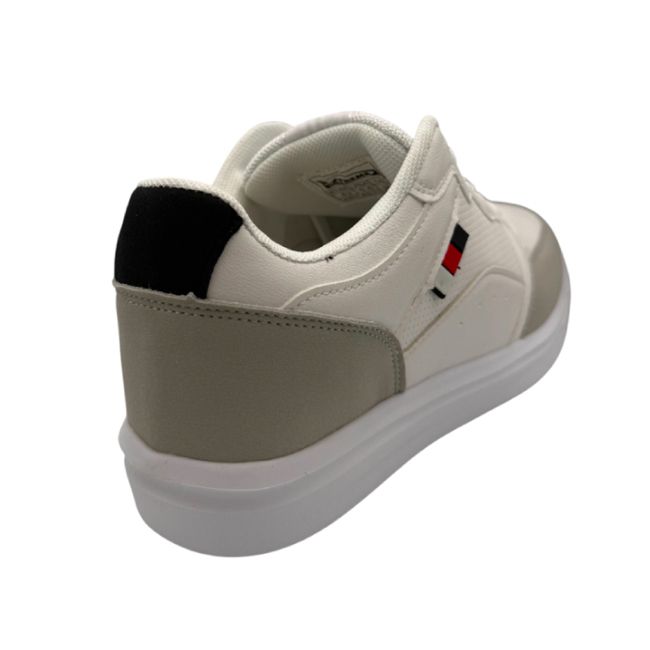 Ανδρικό λευκό αθλητικό με μπεζ διχρωμία, λευκή σόλα, κορδόνια και τρίχρωμη διακριτική λεπτομέρεια. Ιδανική επιλογή για κάθε περίσταση.