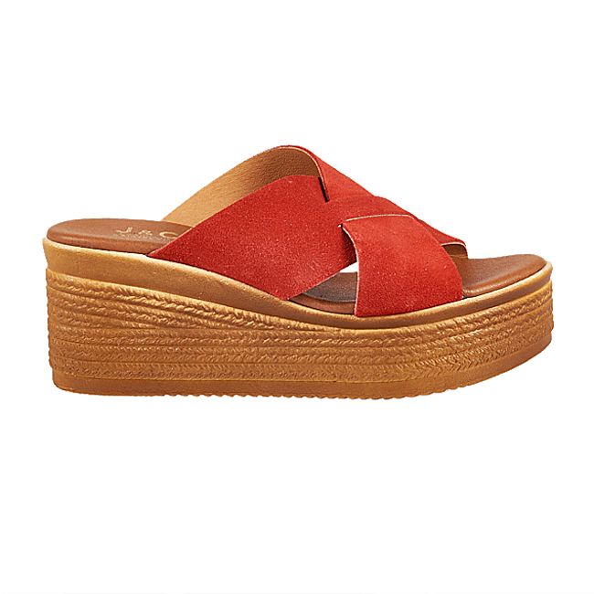 Πλατφόρμα χιαστί από υλικό τύπου σουέτ και ανάγλυφη σόλα. Διαθέτει δερμάτινο πατάκι, είναι ελληνικής κατασκευής και εξαιρετικής ποιότητας. Διαθέτει πολύ μαλακό πάτημα και είναι ιδανική για κάθε περίσταση.