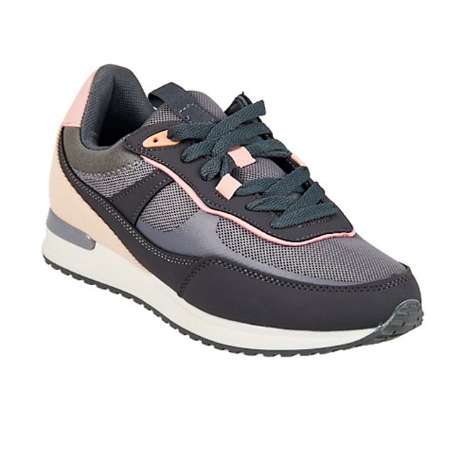 Γυναικείο γκρι αθλητικό υπόδημα με ροζ λεπτομέρεια, κορδόνια και λευκή σόλα.Υλικό: Συνθετικό.Φόρμα: Κανονική.Χρώμα: Γκρι.