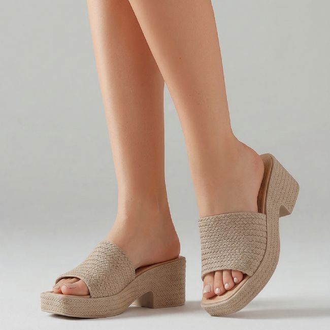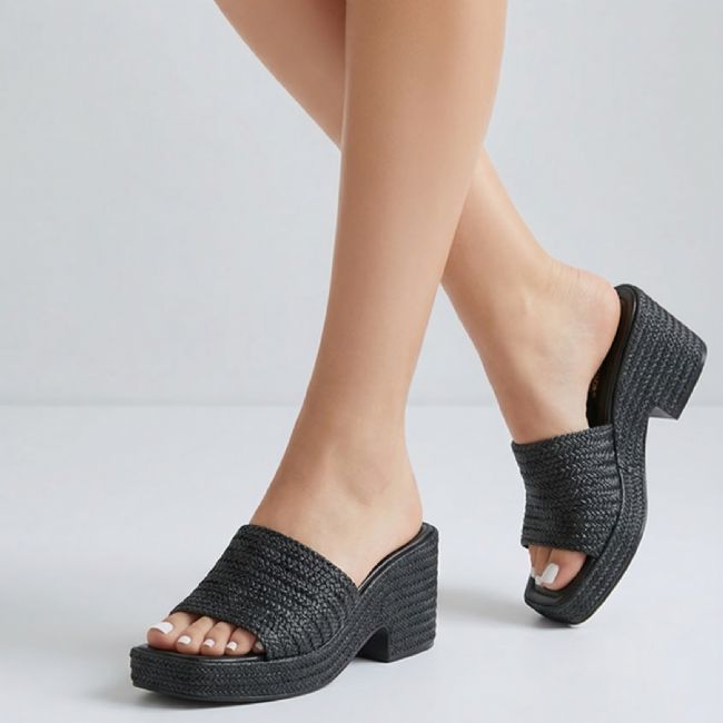Γυναικεία σαγιονάρα πλατφόρμα με φάσα και τακούνι. Διαθέτει μοτίβο ψάθας.Υλικό: Συνθετικό.Φόρμα: Κανονική.Ύψος μπροστά: 2,5 εκ.Ύψος πίσω: 6 εκ.Χρώμα: Μπεζ, Λευκό, Μαύρο.