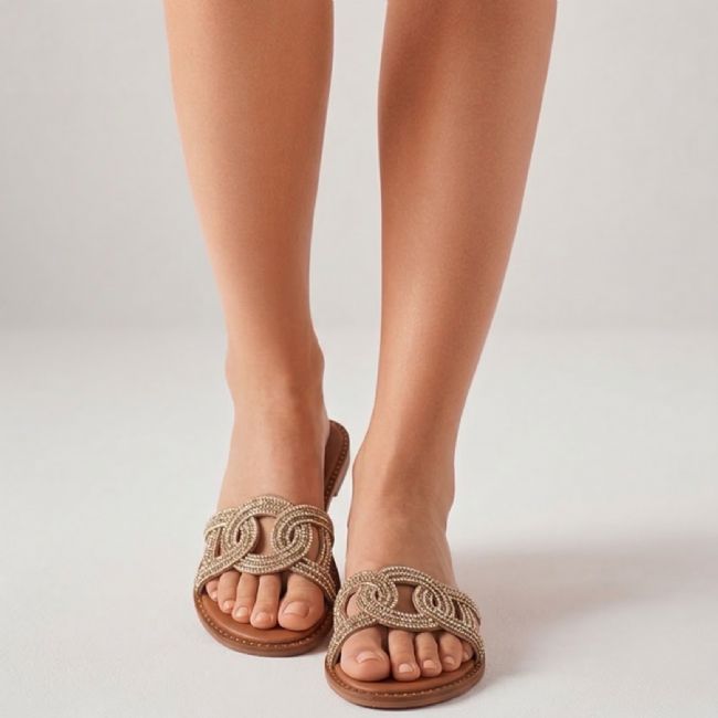 Σανδάλι flat ελληνικής κατασκευής με περίτεχνη φάσα.Υλικό: ΣυνθετικόΦόρμα: ΚανονικήΠροέλευση: Ελλάδα Χρώμα: Μπεζ
