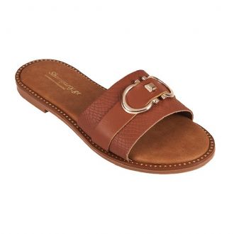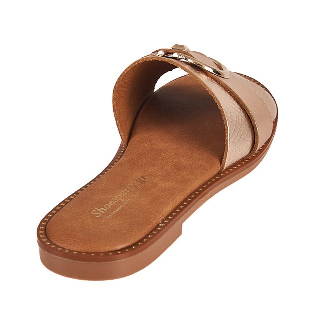 Σανδάλι flat ελληνικής κατασκευής με φάσα και διακοσμητική αγκράφα. Υλικό: ΣυνθετικόΦόρμα: ΚανονικήΠροέλευση: Ελλάδα Χρώμα: Χρυσό