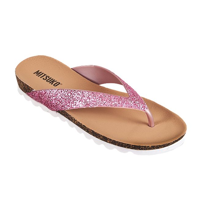 Γυναικεία σαγιονάρα δίχαλη με glitter - Mitsuko - Ροζ