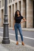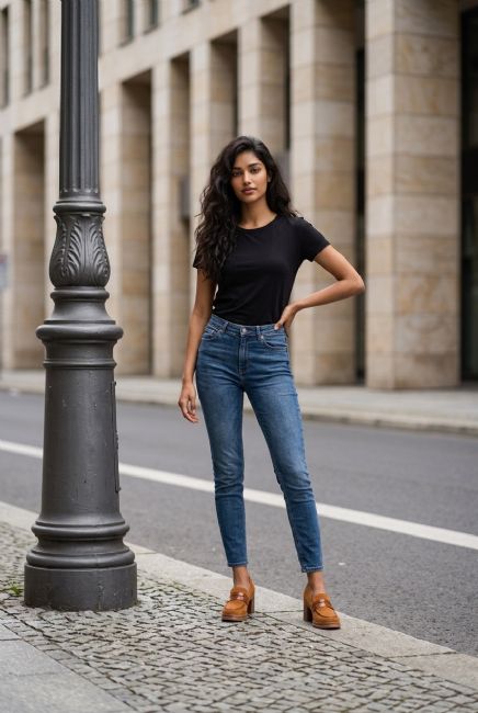 Γυναικείο μοκασίνι με τακούνι και υλικό τύπου σουέτ.