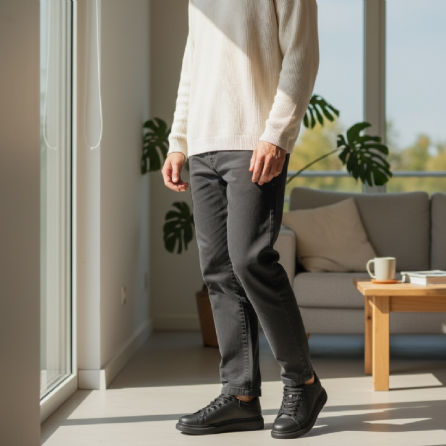 Ανδρικό sneaker με υπερυψωμένη σόλα - Μαύρο