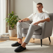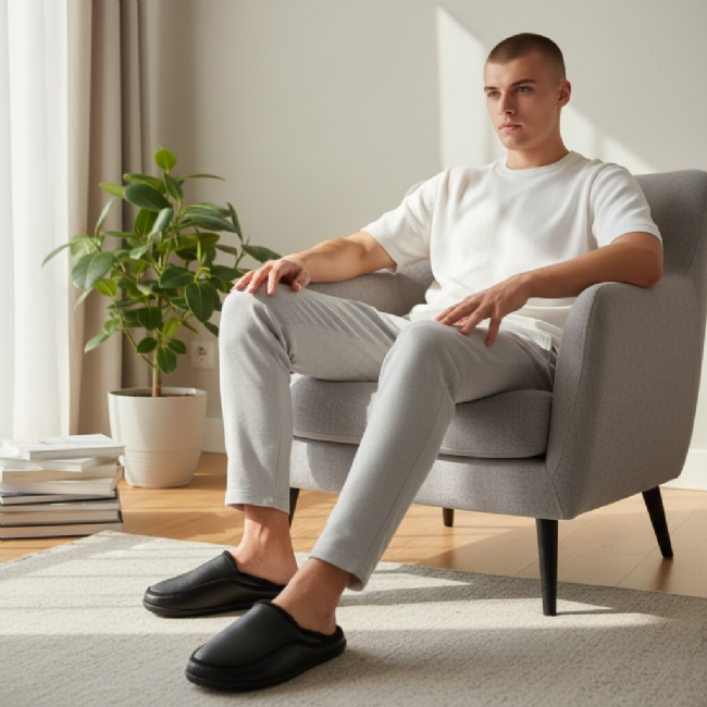 Ανδρική παντόφλα με συνθετικό δέρμα και ζεστή επένδυση.