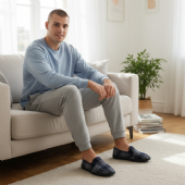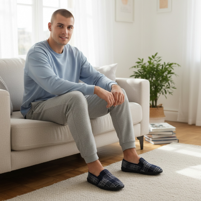 Ανδρική κλειστή παντόφλα με καρό μοτίβο - Mitsuko - Μπλε