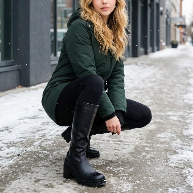 Γυναικεία μπότα με τετράγωνο τακούνι - Μαύρο