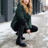Γυναικεία μπότα με τετράγωνο τακούνι. Διαθέτει φερμουάρ στην εσωτερική πλευρά.