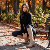 Γυναικεία μπότα με τετράγωνο τακούνι. Διαθέτει φερμουάρ στην εσωτερική πλευρά.