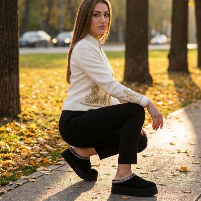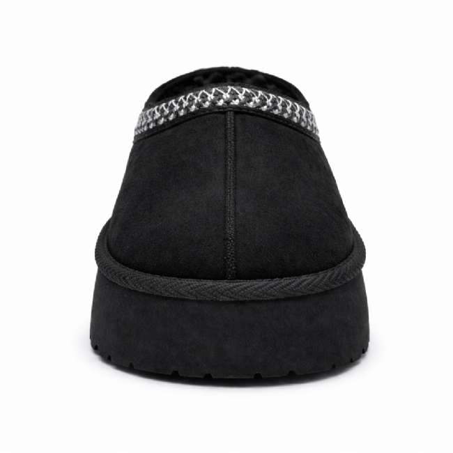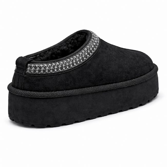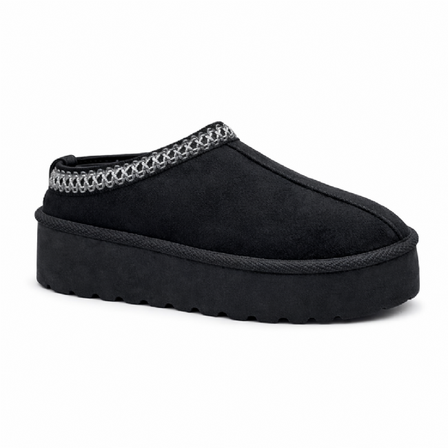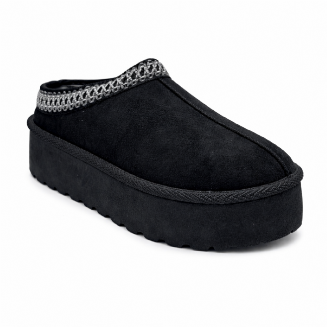 Παντόφλα μποτάκι flatform με ζεστή γούνινη επένδυση και υλικό τύπου σουέτ. Διαθέτει τρακτερωτή σόλα και διακοσμητική τρέσα γύρω από τον αστράγαλο.