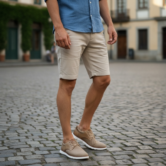 Ανδρικό δίχρωμο μοκασίνι με κορδόνια και σπορ διάθεση. Διαθέτει μαξιλαράκι στο πέλμα για άνεση στο πάτημα.