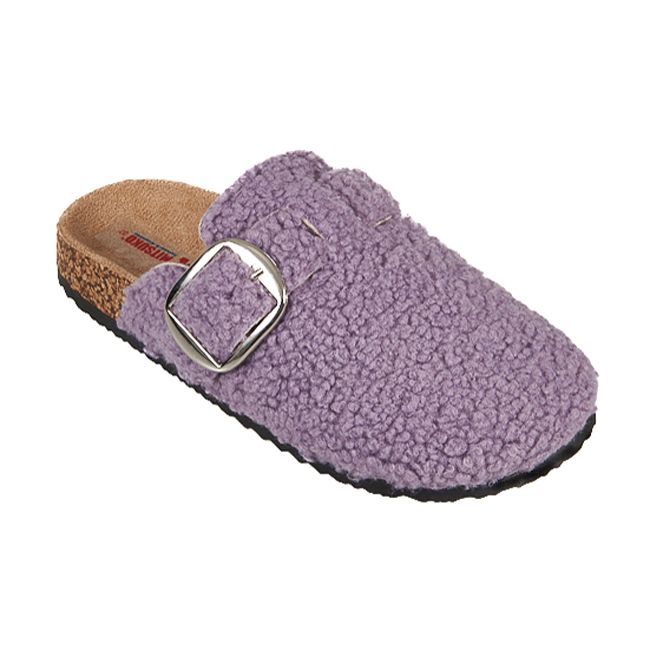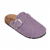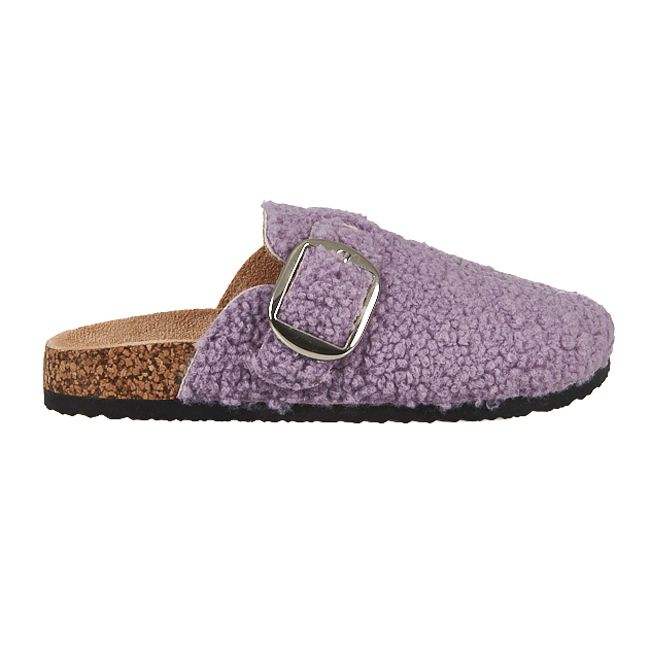 Ανανεώστε το στυλ σας με τη γυναικεία σαμπό παντόφλα μπουκλέ σε υπέροχο λιλά χρώμα.