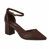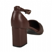 Γυναικεία γόβα με χοντρό τακούνι και λουράκι αστραγάλου - Καφέ