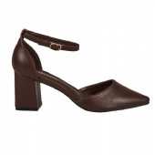 Αναδείξτε το στυλ σας με αυτή τη γυναικεία γόβα σε καφέ χρώμα, με χοντρό τακούνι 7 εκ. και κομψό λουράκι στον αστράγαλο.