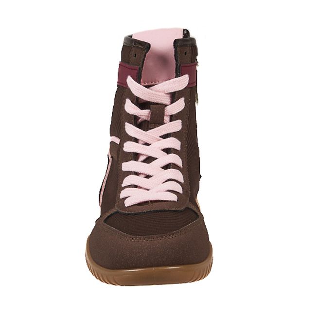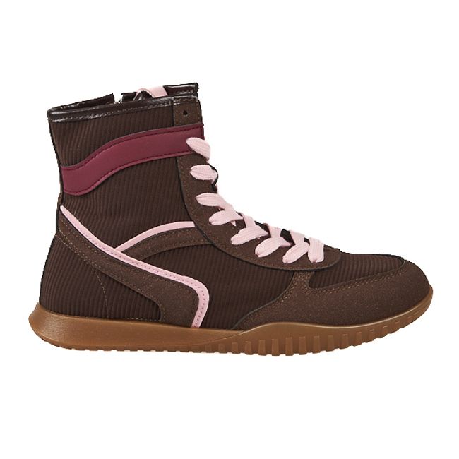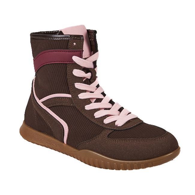 Ανανεώστε το στυλ σας με αυτό το γυναικείο αθλητικό μποτάκι σε καφέ απόχρωση και μοντέρνες ροζ λεπτομέρειες.