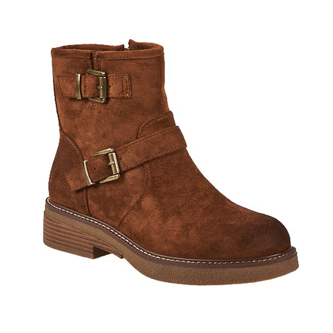 Γυναικείο μποτάκι με δύο αγκράφες - Κάμελ
