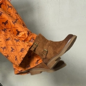 Είναι κατασκευασμένο από συνθετικό υλικό τύπου σουέτ, με χαμηλό τακούνι και πρακτικό φερμουάρ για εύκολη εφαρμογή.
