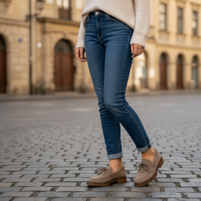 Αναβαθμίστε το στιλ σας με αυτό το γυναικείο loafer σε μπεζ απόχρωση, κατασκευασμένο από απαλό συνθετικό σουέτ υλικό.