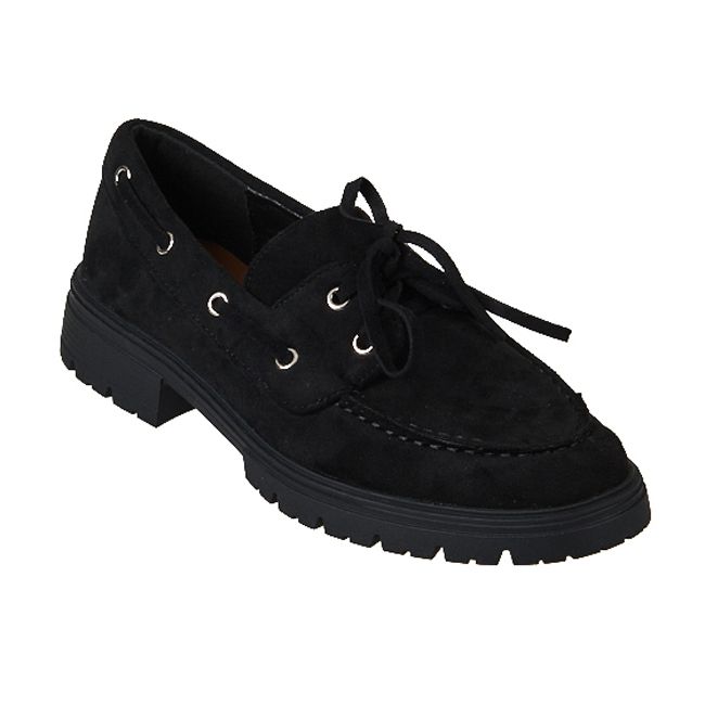 Γυναικείο loafer με κορδόνι - Μαύρο