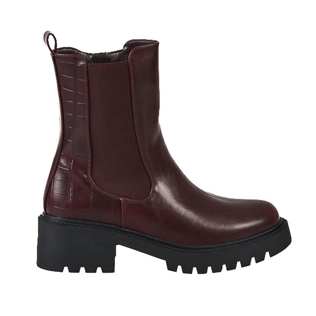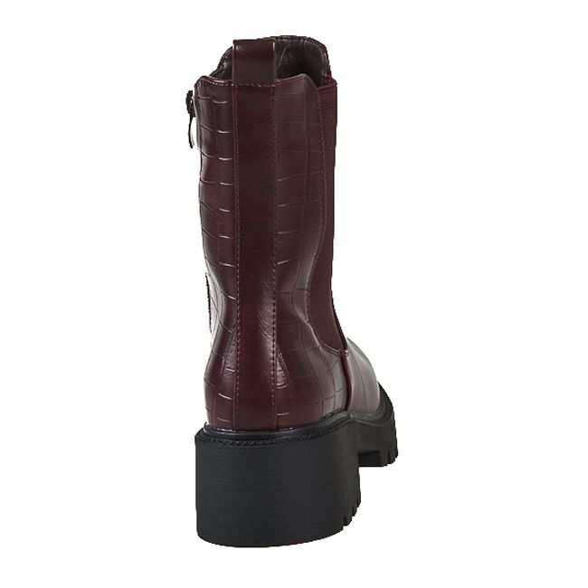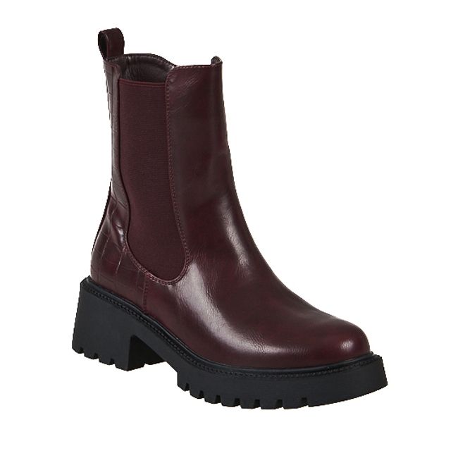 Αναβάθμισε το στιλ σου με αυτό το γυναικείο μποτάκι σε εντυπωσιακό μπορντό χρώμα και κομψό κροκό μοτίβο στο πίσω μέρος.