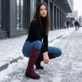 Γυναικεία μπότα με χαμηλό τακούνι - Μπορντό