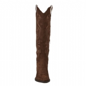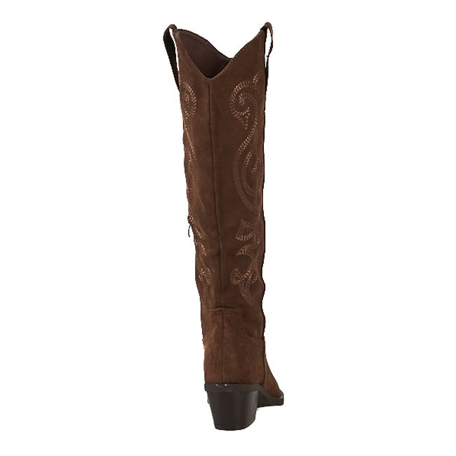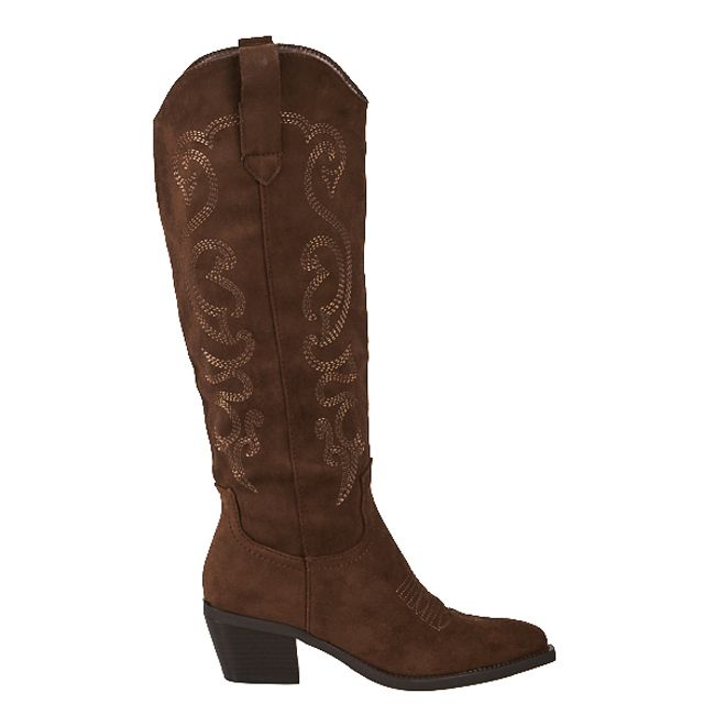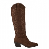 Αναδείξτε το στυλ σας με τη γυναικεία μπότα western σε λαδί χρώμα από υλικό τύπου σουέτ.