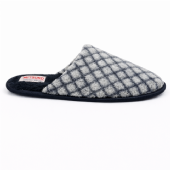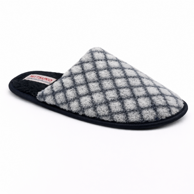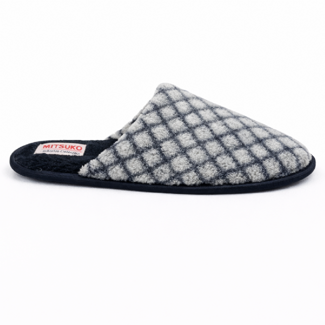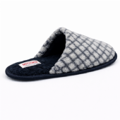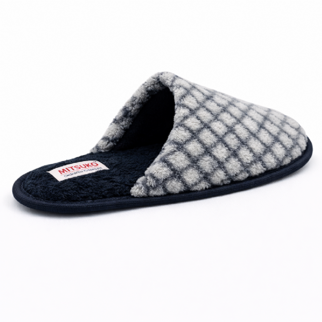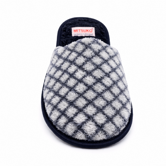 Ανακαλύψτε τη μοναδική άνεση της γυναικείας χνουδωτής παντόφλας σε μπλε απόχρωση με εντυπωσιακό καρώ μοτίβο.