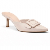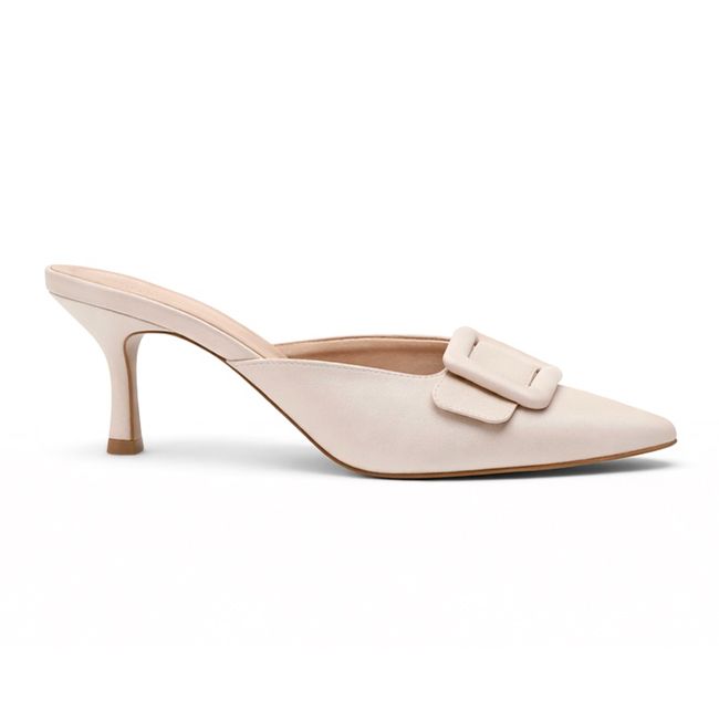 Αναδείξτε το στυλ σας με τη μπεζ mule γόβα και τη statement μεγάλη αγκράφα που τραβάει τα βλέμματα.