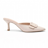Γόβα mule με μεγάλη αγκράφα - Μπεζ