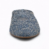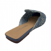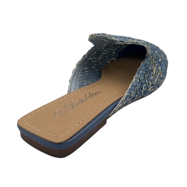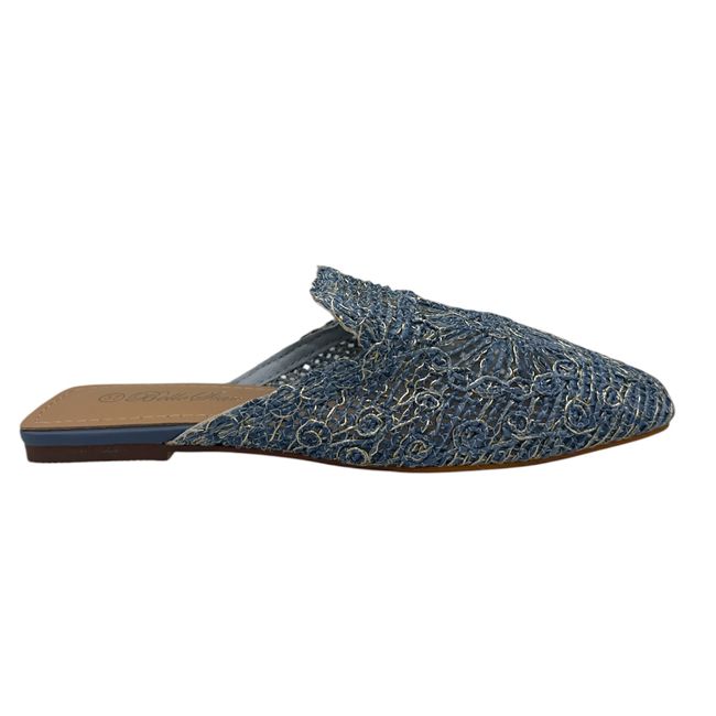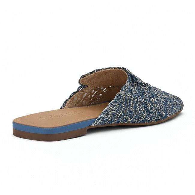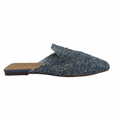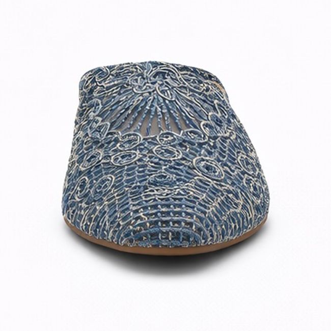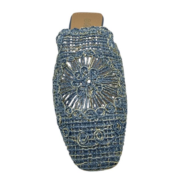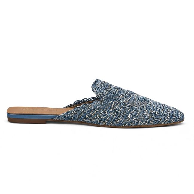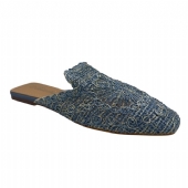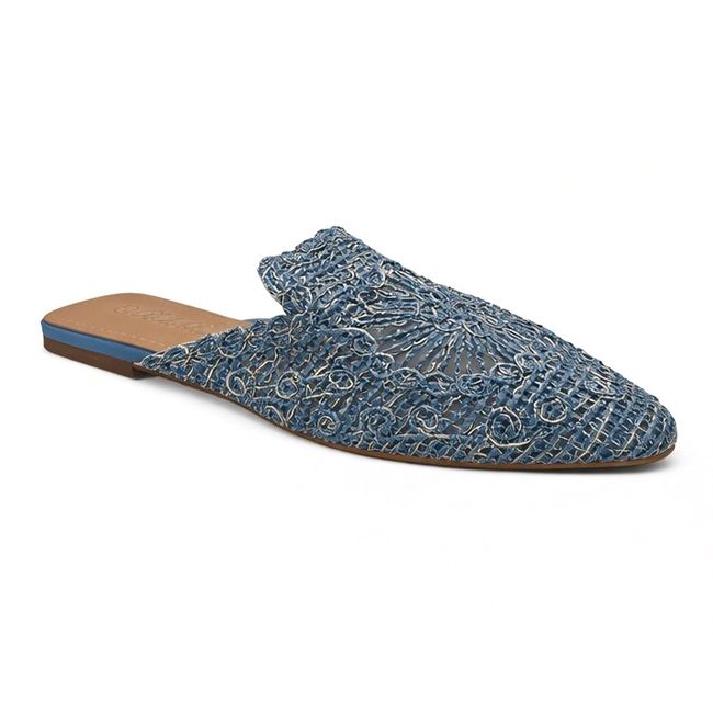 Αναδείξτε το στυλ σας με το mule flat μοκασίνι σε μοντέρνο μπλε χρώμα και εντυπωσιακή διάφανη πλέξη.