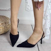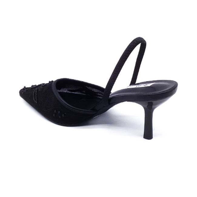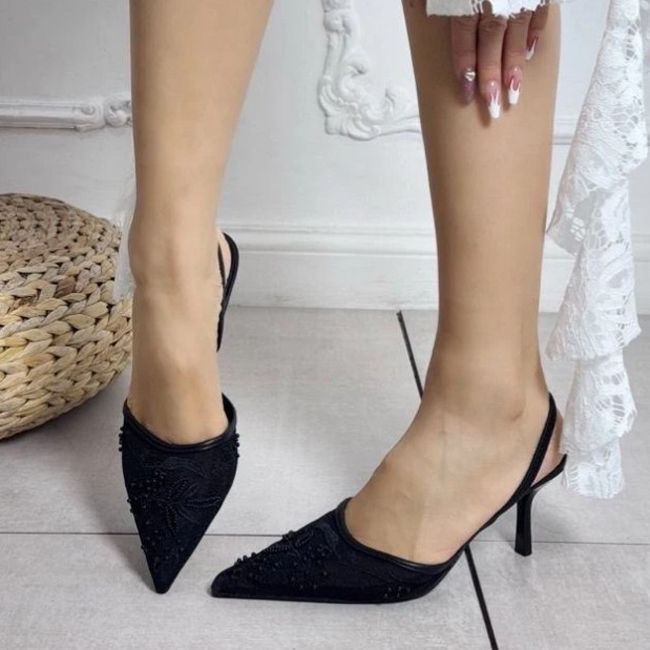 Γόβα με διάφανη δαντέλα και μαύρες πέρλες