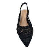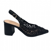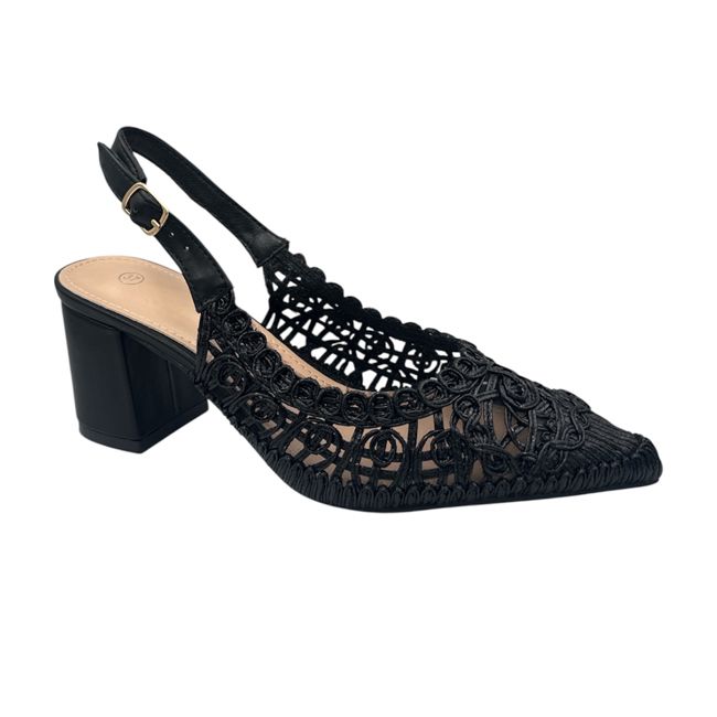 Αναδείξτε το στυλ σας με αυτή τη μοναδική γόβα σε μαύρο χρώμα και διάφανη πλέξη που μαγνητίζει τα βλέμματα.