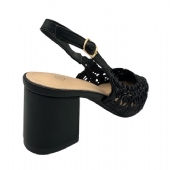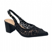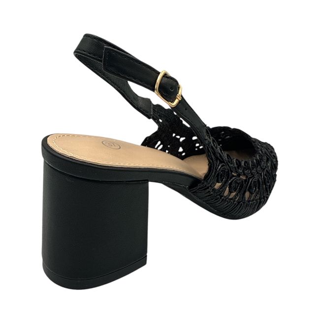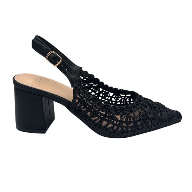 Γόβα με διάφανη πλέξη και χοντρό τακούνι - Μαύρο