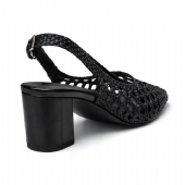 Γόβα με διάφανη πλέξη και χοντρό τακούνι - Μαύρο