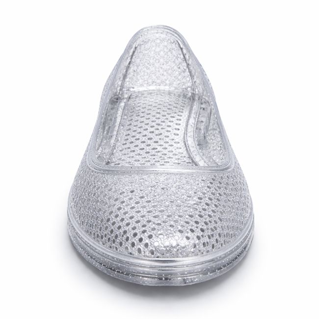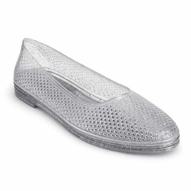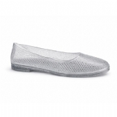Αναδείξτε το στυλ σας στην παραλία με το γυναικείο παπούτσι θαλάσσης μπαλαρίνα με glitter σε ασημί χρώμα.