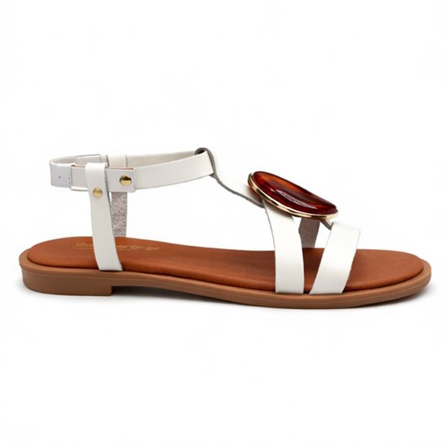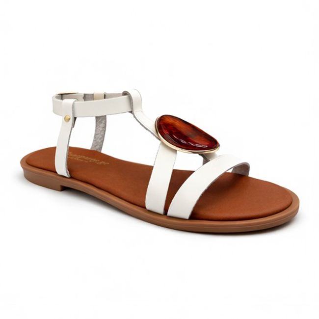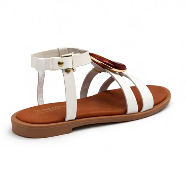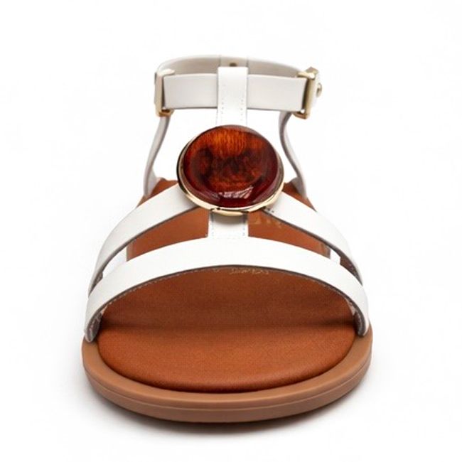 Αναδείξτε το στυλ σας με το λευκό σανδάλι που ξεχωρίζει χάρη στη διακοσμητική πέτρα και το κομψό λουράκι στον αστράγαλο.