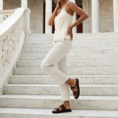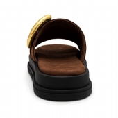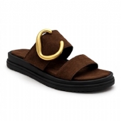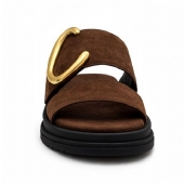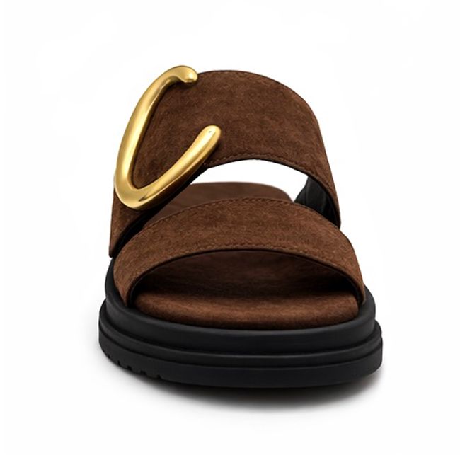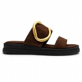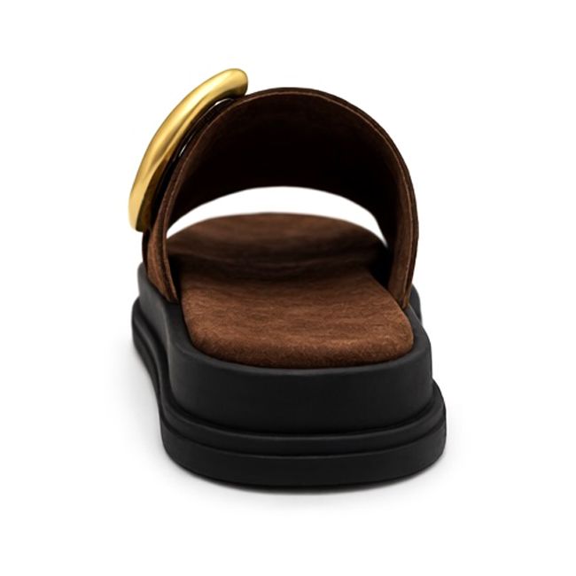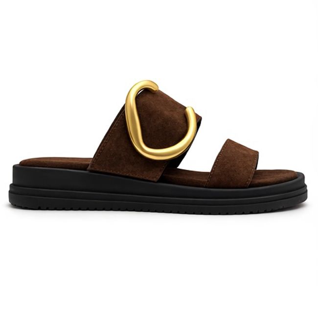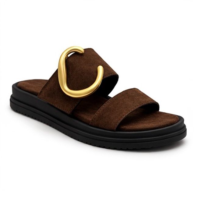 Σανδάλι από υλικό τύπου σουέτ με δύο φάσες και μεγάλη χρυσή αγκράφα.