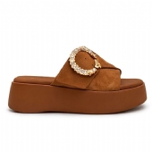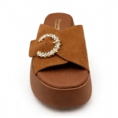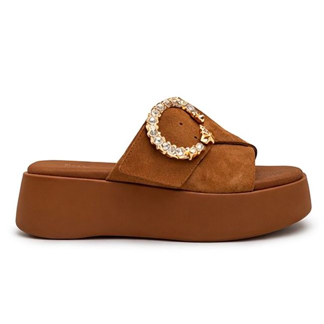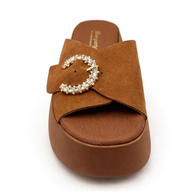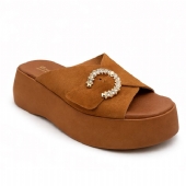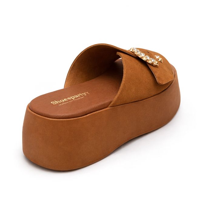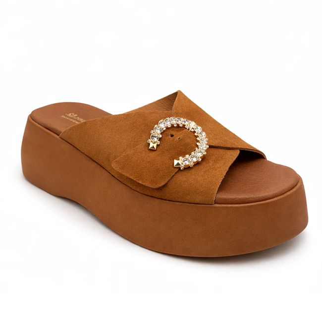 Αναδείξτε το στυλ σας με πλατφόρμα ελληνικής κατασκευής σε κάμελ χρώμα και διακοσμητική φάσα με λαμπερά στρας.