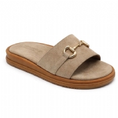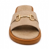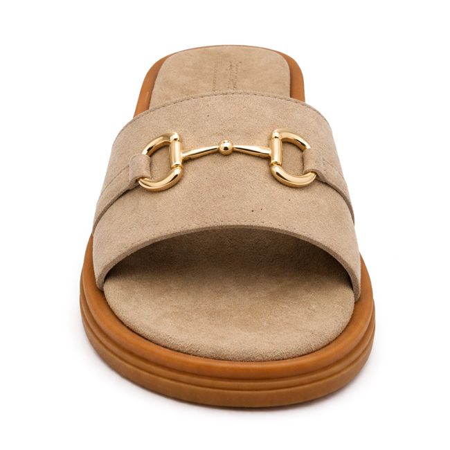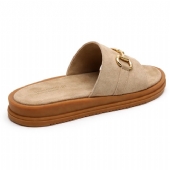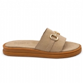 Αναδείξτε το στυλ σας με το μπεζ σανδάλι πλατφόρμα ελληνικής κατασκευής, διακοσμημένο με κομψή χρυσή αγκράφα.