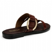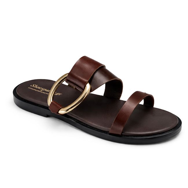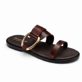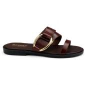 Αναδείξτε το στυλ σας με αυτό το καφέ σανδάλι, που ξεχωρίζει χάρη στη λαμπερή χρυσή διακόσμηση.